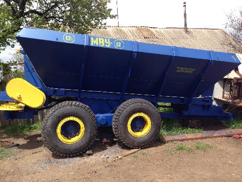 Розкидач МВУ-12 (РУМ-12) призначений для транспортування і поверхневого суцільного внесення в ґрунт мінеральних добрив, дефекату, піску,вапна,гіпсу,курпомету та ін. Бункер виготовлений з біметалу (нержавіюча сталь).